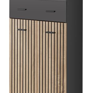 This Arthur Tall Hallway Cabinet is a stylish and functional addition to any hallway. With its oak and anthracite colour scheme, hinged door, four shelves, and one drawer, it offers ample storage space. Made from high-quality laminated board, it is durable and sturdy. Assembly is required, and estimated delivery time is 3-5 weeks.