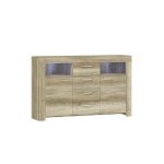 This Ballad Display Sideboard Cabinet is a stunning piece of furniture that combines style and functionality. With four spacious drawers, two open compartments for electronics, and hinged doors for storage, it offers ample space for all your belongings. The timeless design, silver handles, and two oak shade options make it a classy addition to any room. Optional LED lighting is available for purchase separately. Made from high-quality laminated chipboard, this cabinet is durable and