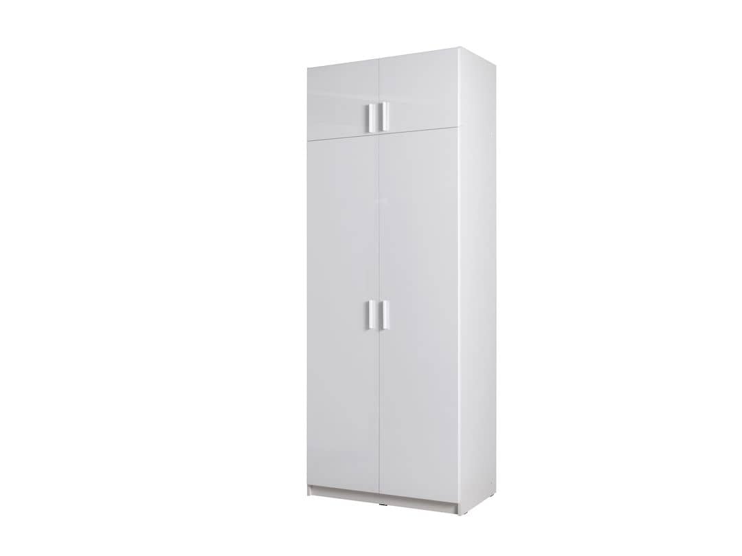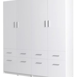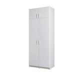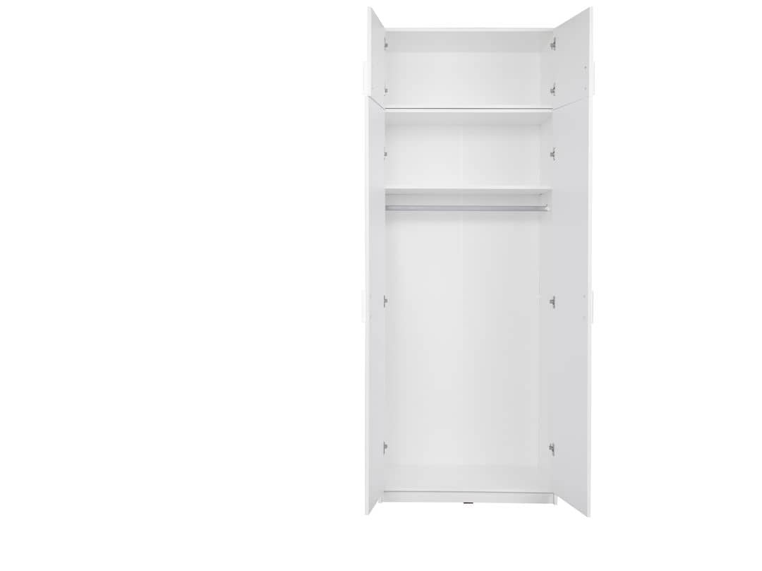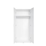 Create a stylish and sophisticated look in your bedroom with this two-door white wardrobe. An inviting centerpiece, it will effortlessly transform any guest room or master suite. It is crafted from 16mm laminated board with a minimalist design and smooth finish, making it highly durable and easy to clean. It has one shelf and one hanging rail for storage, allowing you to easily organize clothing, shoes and accessories.