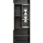 This Beret Tall Cabinet is a standout piece with its curved corners, unique angled legs, and stunning colour combination. It features a handle-free hinged door with a push-to-open mechanism, four shelves, and three LED-equipped open compartments for displaying decorations. Made from high-quality laminated board, this cabinet is both stylish and durable. Matching furniture is also available. Estimated delivery time is 6-8 weeks.