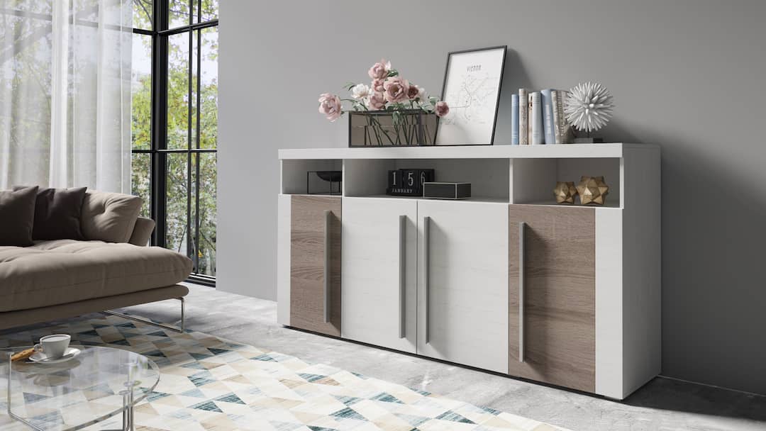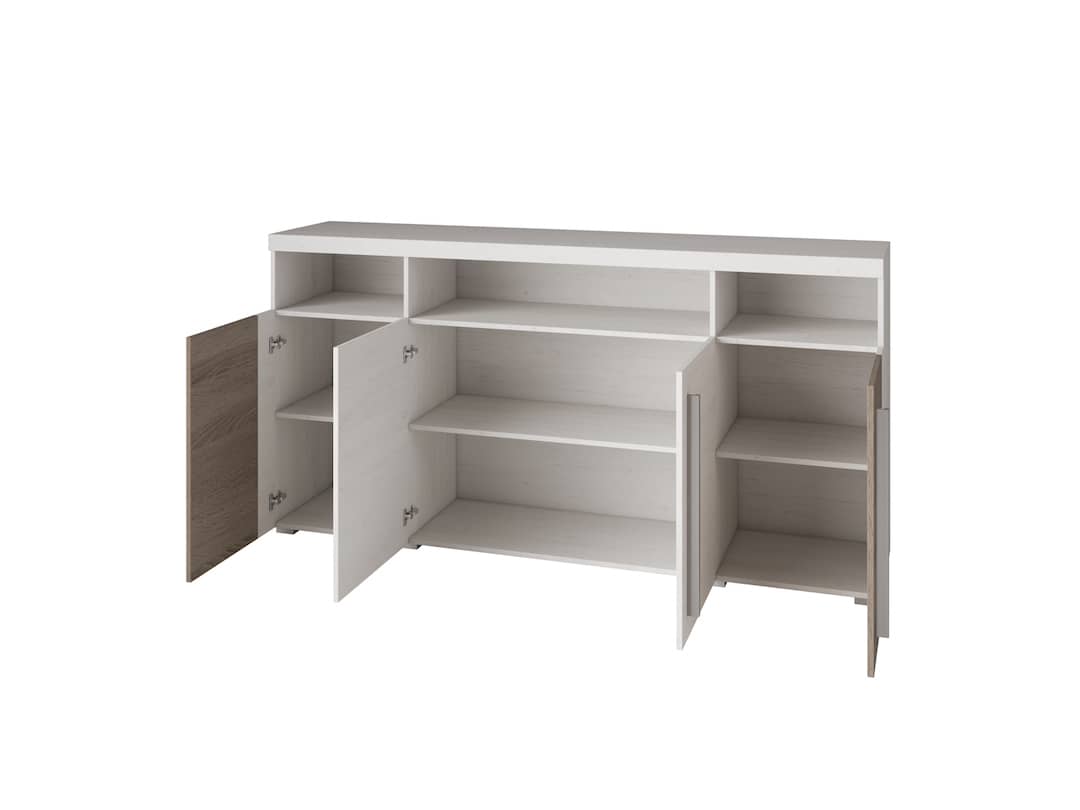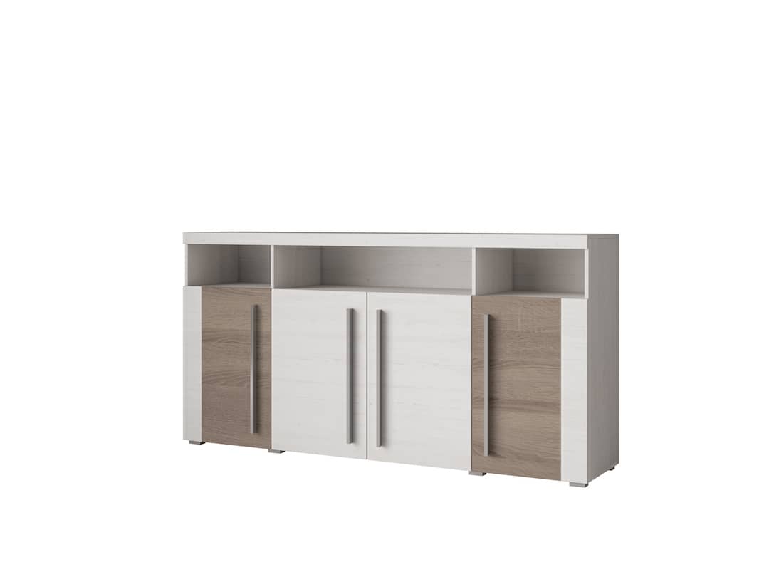 The Griffin 28 is a stunning sideboard cabinet that will fit effortlessly into any modern or contemporary decor. It features three open and six closed compartments for storage and is finished in the stunning Andersen Pine and Oak Sonoma Truffle colour scheme. Made from 16mm laminated board, it ensures abrasion-resistance and long-lasting durability.