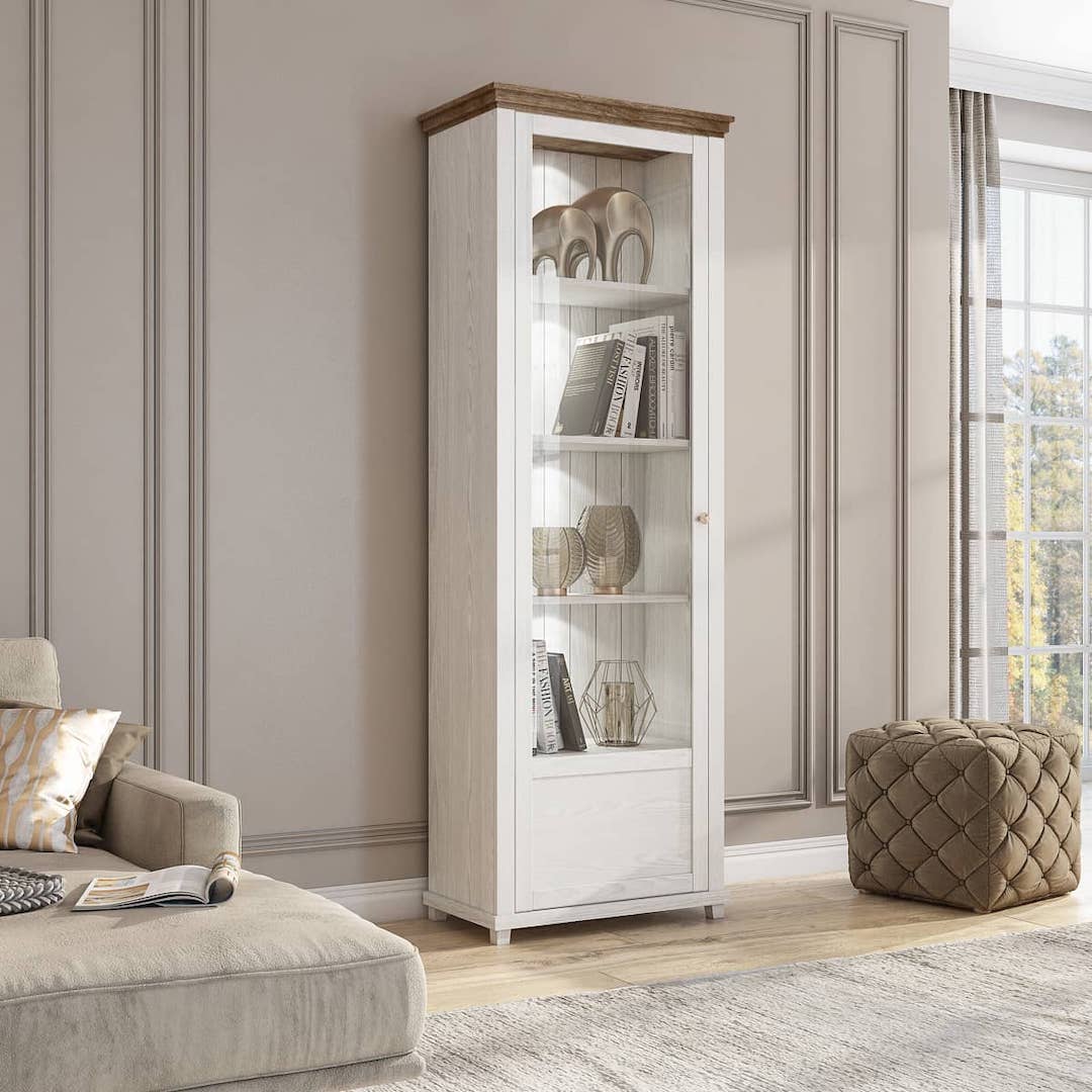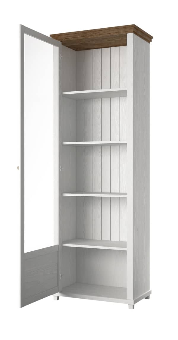 Discover the beauty of a traditional display cabinet with this stunning piece from Knight. With partially-glazed hinged door and five compartments, it has all your needs covered. Its stunning oak finish makes this cabinet both elegant and welcoming. Boasting a sturdy 16mm laminated board carcass, this high quality unit takes pride of place in any modern home.