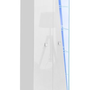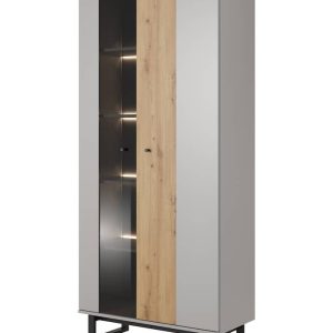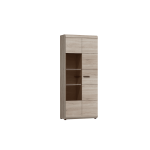 This Sterling Tall Display Cabinet 80cm features two hinged doors, eight shelves (two plaid), and optional LED lighting. Made from high-quality laminated board, it is available in Oak Sonoma colour. Assembly is required, and matching furniture is also available. Estimated delivery time is 4-5 weeks.