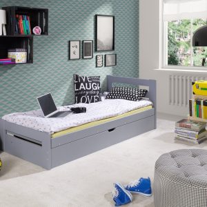 The Ergo wooden bed is a high-quality bed. It is made of solid wood, and comes equipped with two large drawers for storage. The drawers are not fixed, which gives them portability and the opportunity to take them out or tuck them under the bed whenever needed. This bed is available in three different colours – white, graphite and pine, and can be bought with or without the appropriate mattress.