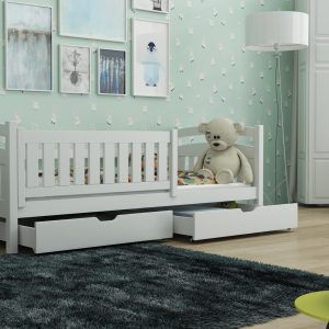 This high-quality Ergo wooden bed is made of solid wood and comes with two portable drawers for storage. Available in white, graphite, and pine, it can be purchased with or without a mattress. The bed features a universal front panel and a removable safety guard. Choose from three colours that showcase the grain detail and ensure your child’s safety with water-based paint.