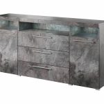 This stylish Vanguard 25 Sideboard Cabinet is the perfect addition to modernize your home. With seven compartments and three spacious drawers, it provides ample storage space. Made from durable 16mm laminated board, it is resistant to abrasion. Upgrade it with LED lights for an extra touch of elegance.