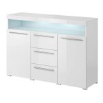 A practical and perfect pick for any space, this sideboard is a modern and brilliantly crafted buffet cabinet that offers plenty of storage space. Featuring four closed and one open compartment along with three spacious drawers, the sideboard will easily store all your essentials in a neat and organized manner. It is made from 16mm laminated board and can be upgraded with LED lights (available separately).