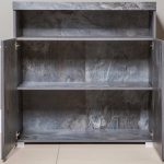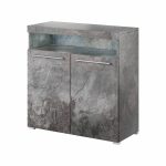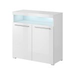 This stylish sideboard cabinet is the perfect addition to any modern, industrial or contemporary decor. Made from high-quality laminated board, it features ample storage with two closed and one open compartment. Available in two colour options, it can be upgraded with LED lights for added ambiance. Dimensions: W91cm x H92cm x D39cm. Assembly required. Estimated delivery time: 3-5 weeks.