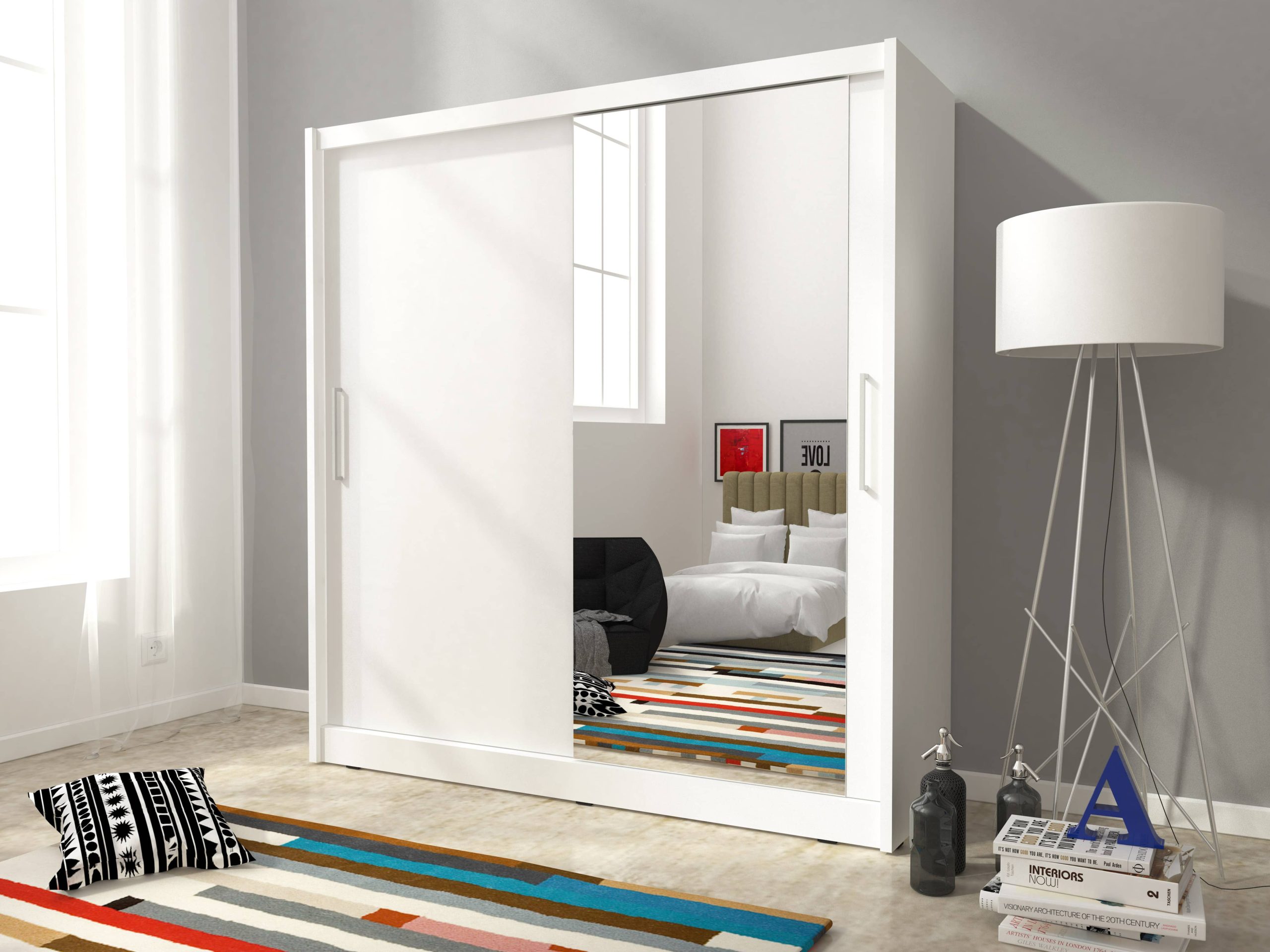 A high-quality wardrobe crafted from the finest laminated board and strengthened with ABS edging. It features two sliding doors, one completely mirrored, and an elegant form which is perfect for modern and minimalist interiors. The Vestige I offers ten compartments and one hanging section for storage.
